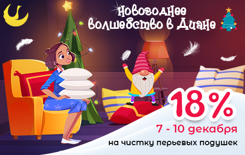 С 07 по 10 декабря скидка 18% на чистку перьевых подушек